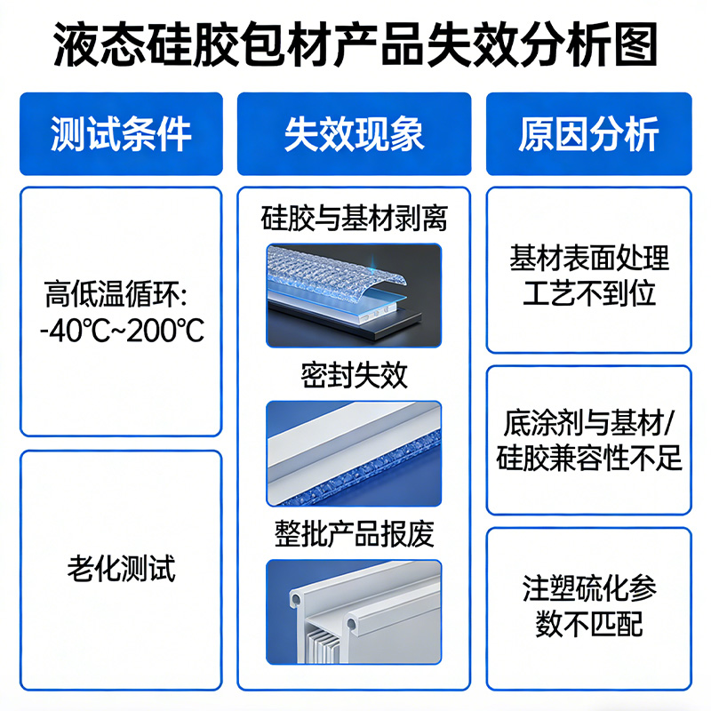 其核心根源并非簡單的 “膠水不好”,而是基材表面處理工藝不到位、底涂劑與基材 / 硅膠的兼容性不足、注塑硫化參數不匹配三大問題疊加。尤其針對 PA、PPSU、不銹鋼等特種基材,很多廠家沒有成熟的預處理方案,只能靠反復試錯,時間與原料成本極高。